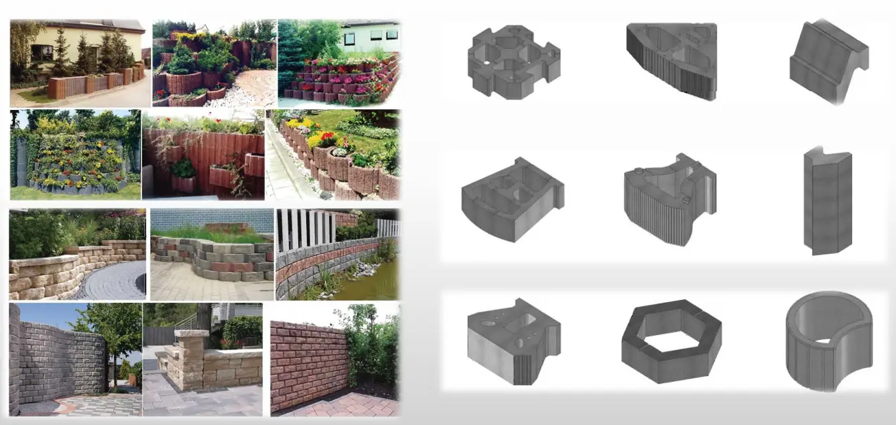 قالب های دستگاه بلوک چند منظوره معمولاً همراه با دستگاه های بلوک استفاده می شود. با جایگزینی قالبهای مختلف میتوان انواع مختلفی از بلوکها مانند آجر متخلخل، بلوک توخالی، سنگنما، آجر روسازی، آجر درختان چمنکاری، آجر محافظ شیب و سایر محصولات سیمانی تولید کرد. محصولاتی که توسط قالب های ماشین بلوک چند منظوره تشکیل می شوند، پایداری بالایی دارند و نرخ ضایعات پایینی دارند. طراحی قالب های ماشین بلوک چند منظوره آنها را قادر می سازد تا با انواع نیازهای تولیدی سازگار شوند و به سادگی با تعویض قالب می توان محصولاتی با مشخصات مختلف تولید کرد. قالب های دستگاه بلوک چند منظوره از مواد با دقت و استحکام بالا ساخته شده اند و برای افزایش عمر مفید مقاومت سایش خوبی دارند. قالب های دستگاه بلوک چند منظوره به راحتی قابل تعویض و نگهداری هستند.